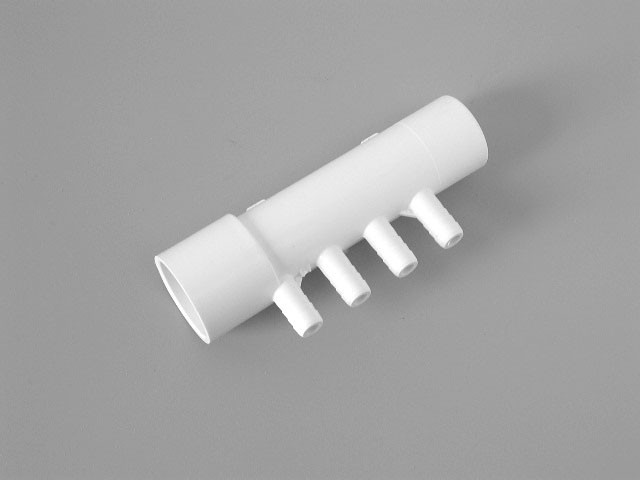 Manifold PVC, Air, WATERW, 1inS x 1inSpg x (4) 3/8inRB Ports